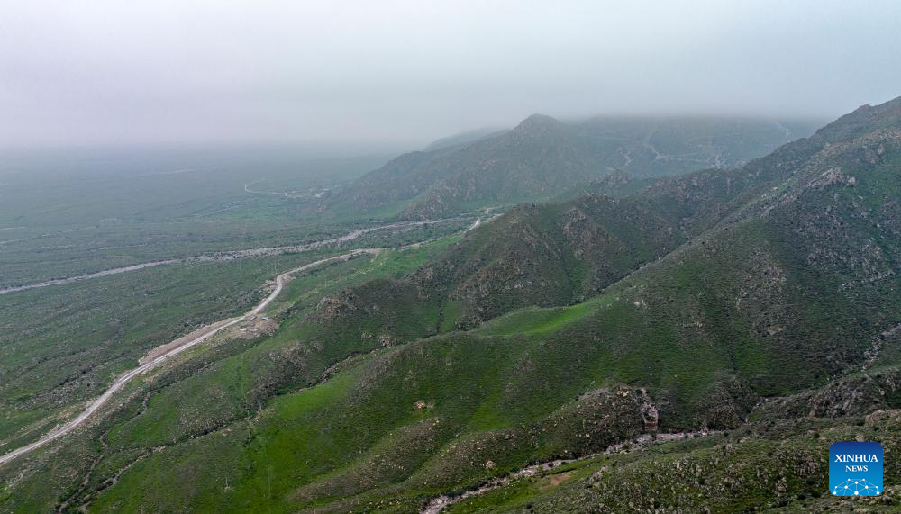 An aerial drone photo taken on Sept. 14, 2024 shows the scenery of Helan Mountain in Yinchuan, northwest China's Ningxia Hui Autonomous Region. (Xinhua/Yang Zhisen)