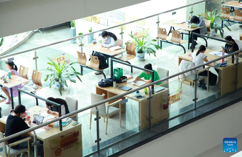 People read at Nanjing Library in Nanjing, east China's Jiangsu Province, Sept. 15, 2024. The Mid-Autumn Festival is one of China's most important traditional holidays. Taking place annually on the 15th day of the eighth month in the Chinese lunar calendar, it will be observed on Sept. 17 this year. (Photo by Liu Jianhua/Xinhua)