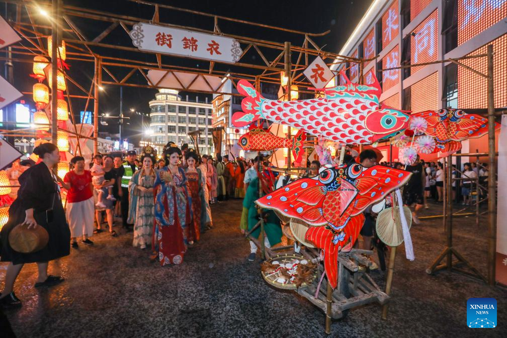 People participate in a folk custom parade in Lin'an District of Hangzhou, east China's Zhejiang Province, Sept. 14, 2024. The Mid-Autumn Festival is one of China's most important traditional holidays. Taking place annually on the 15th day of the eighth month in the Chinese lunar calendar, it will be observed on Sept. 17 this year. (Xinhua/Xu Yu)