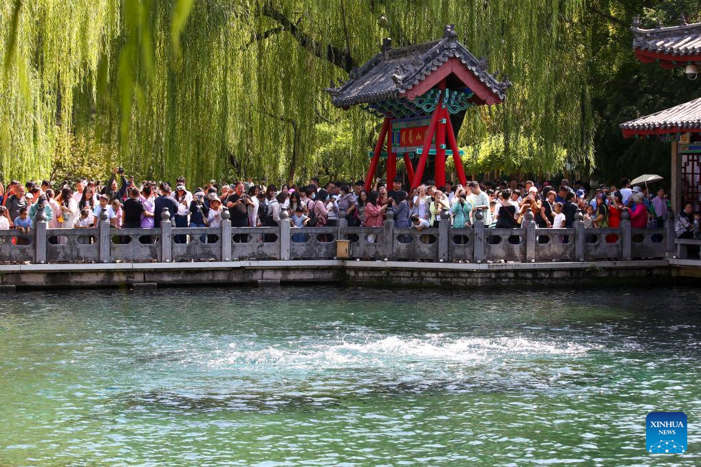 People visit the Baotu Spring in Jinan, east China's Shandong Province, Sept. 15, 2024. The Mid-Autumn Festival is one of China's most important traditional holidays. Taking place annually on the 15th day of the eighth month in the Chinese lunar calendar, it will be observed on Sept. 17 this year. (Photo by Hao Xincheng/Xinhua)