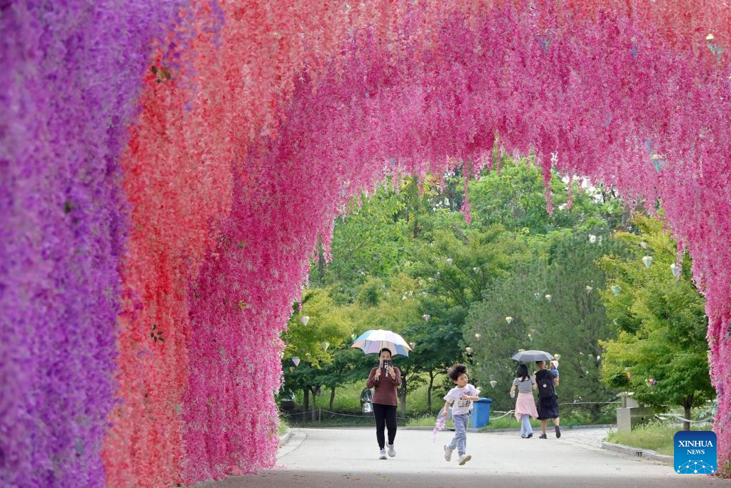 People visit Yantai botanical garden in Yantai, east China's Shandong Province, Sept. 15, 2024. The Mid-Autumn Festival is one of China's most important traditional holidays. Taking place annually on the 15th day of the eighth month in the Chinese lunar calendar, it will be observed on Sept. 17 this year. (Xinhua/Tang Ke)