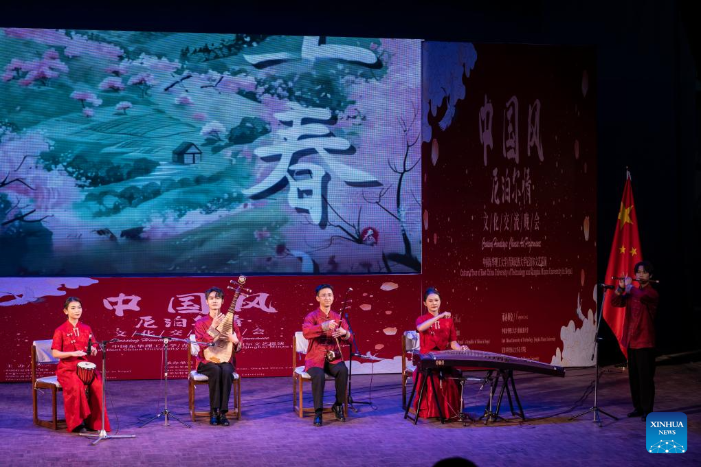 Artists perform at an art event in Kathmandu, Nepal, Sept. 11, 2024. (Photo by Hari Maharjan/Xinhua)