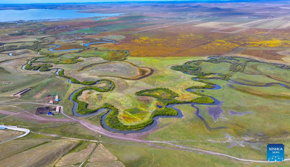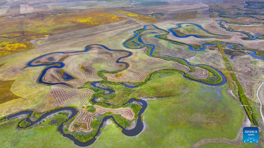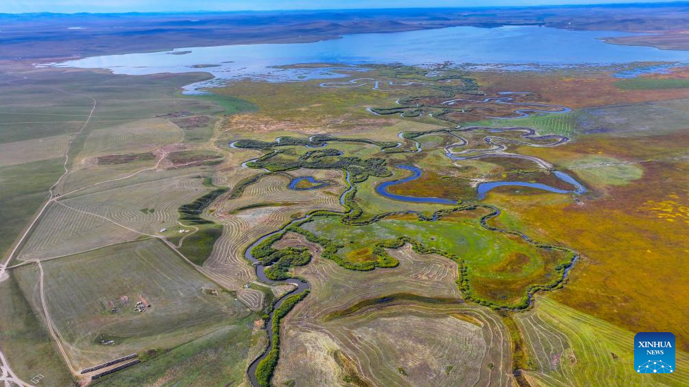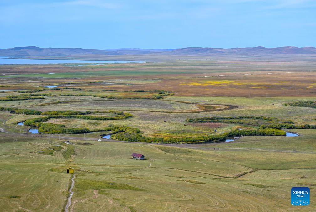 An aerial drone photo taken on Sept. 17, 2024 shows the scenery of Ulgai Grassland in Xilingol, north China's Inner Mongolia Autonomous Region. (Xinhua/Peng Yuan)