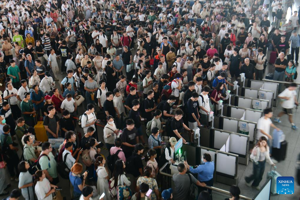 Travelers go through automated gateways to enter a railway station in Wuxi, east China's Jiangsu Province, Sept. 17, 2024. (Photo by Huan Yueliang/Xinhua)