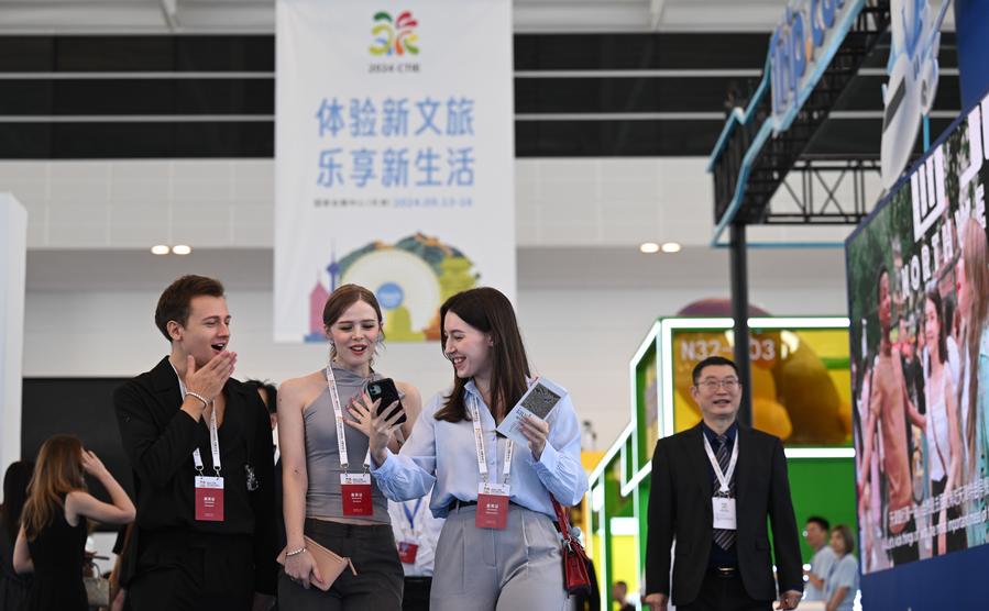 People visit the 2024 China Culture and Tourism Industries Exposition in north China's Tianjin, Sept. 13, 2024. (Xinhua/Sun Fanyue)