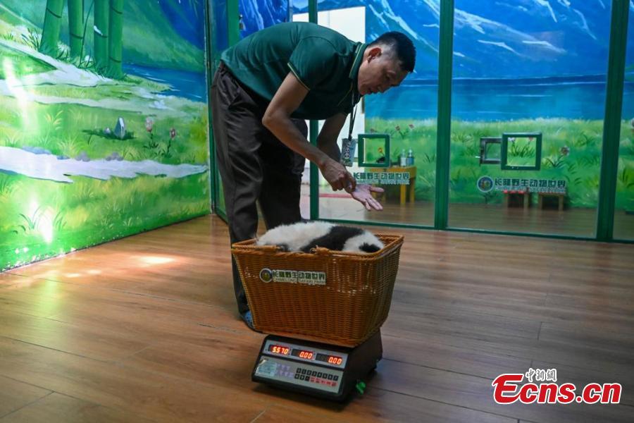 Meng Meng, the eldest of the world's only giant panda triplets, gave birth to the cub on June 18. The cub has grown from 178 grams to 5,570 grams as of Saturday.