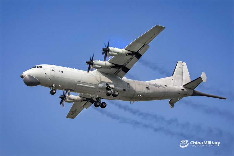 An anti-submarine patrol aircraft attached to an aviation unit with the Chinese PLA Navy takes off for a flight training exercise on August 15, 2024. (eng.chinamil.com.cn/Photo by Yang Lijian)