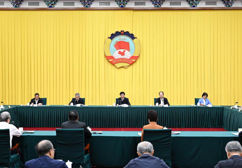 Wang Huning, a member of the Standing Committee of the Political Bureau of the Communist Party of China Central Committee and chairman of the Chinese People's Political Consultative Conference (CPPCC) National Committee, presides over a brain-storming session of the Chairpersons' Council of the CPPCC National Committee and delivers a speech, Sept. 23, 2024. (Xinhua/Shen Hong)