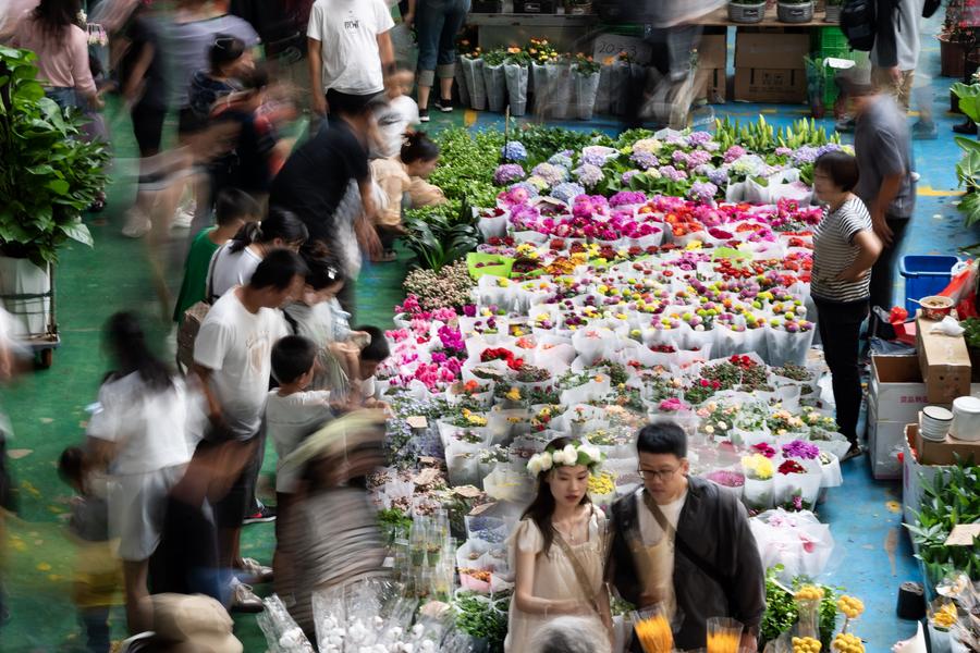 People visit Dounan Flower Market during the Mid-Autumn Festival and National Day holiday in Kunming, southwest China's Yunnan Province, Oct. 5, 2023. (Xinhua/Chen Xinbo)
