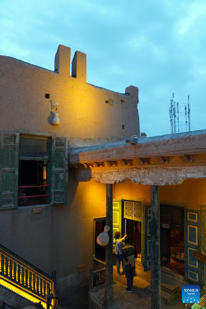 Tourists visit a local residential building with more than 300 years of history in the ancient city of Kashgar, northwest China's Xinjiang Uygur Autonomous Region, Sept. 19, 2024. (Xinhua/Zhao Yusi)