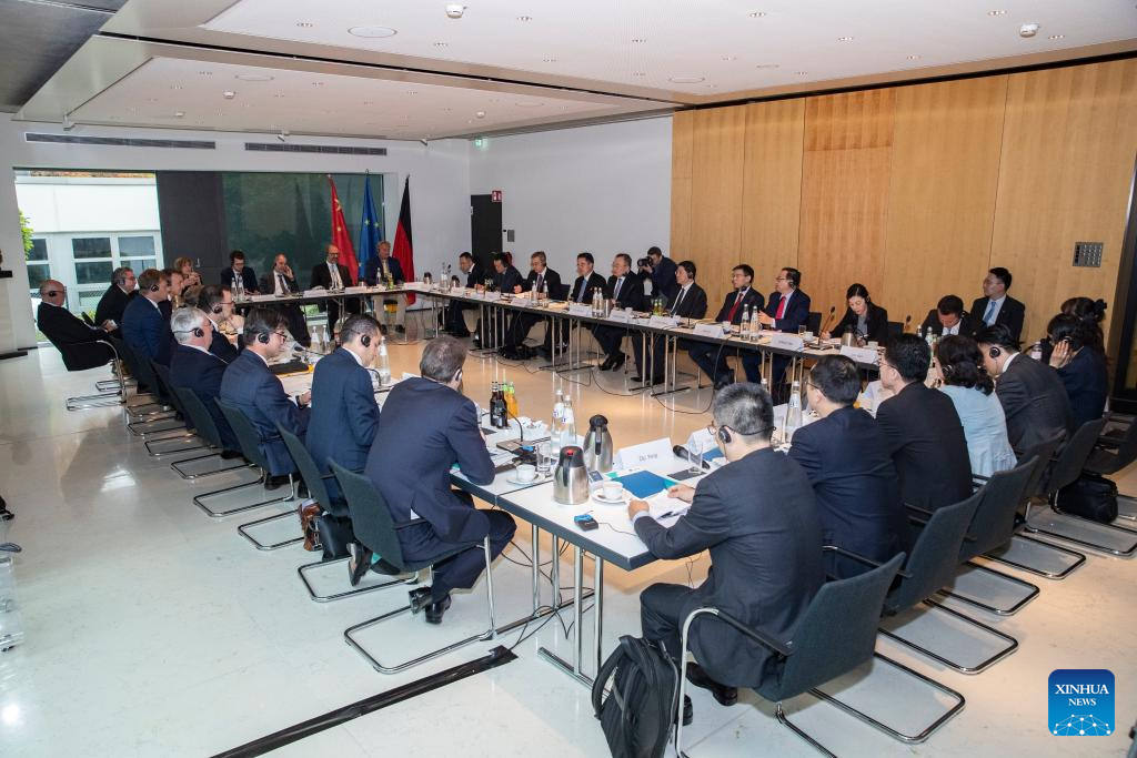 Liu Jianchao, head of the International Department of the Communist Party of China (CPC) Central Committee, attends the first strategic dialogue between the CPC and Germany's Social Democratic Party (SPD) in Berlin, Germany, Sept. 23, 2024. Liu led a CPC delegation on a visit to Germany from Sept. 22 to 25. (Xinhua/Zhang Fan)