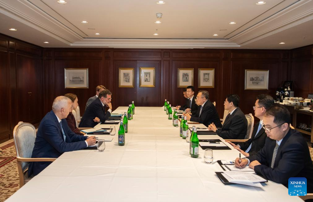 Liu Jianchao, head of the International Department of the Communist Party of China (CPC) Central Committee, meets with Johannes Vogel (1st R), deputy leader of Germany's Free Democratic Party, in Berlin, Germany, Sept. 25, 2024. Liu led a CPC delegation on a visit to Germany from Sept. 22 to 25. (Xinhua/Zhang Fan)