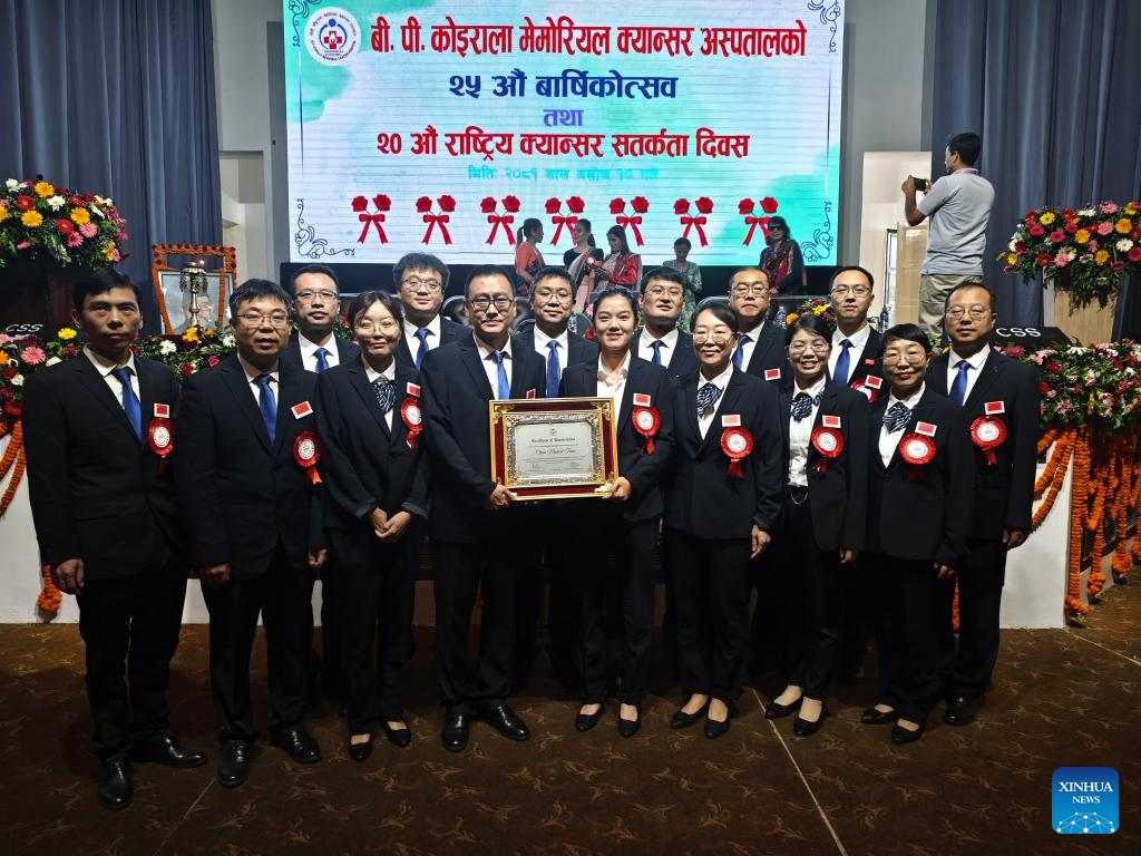 KATHMANDU, Sept. 26 (Xinhua) -- The Chinese medical team in Nepal was honored with an award on Thursday over its "dedicated service" at a local cancer hospital in the past 25 years.