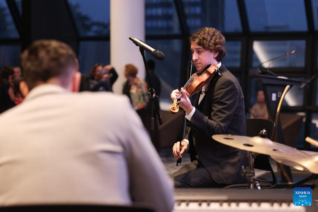 Slovenian musicians perform at a reception marking the 75th anniversary of the founding of the People's Republic of China in Ljubljana, Slovenia, Sept. 26, 2024.(Photo by Zeljko Stevanic/Xinhua)