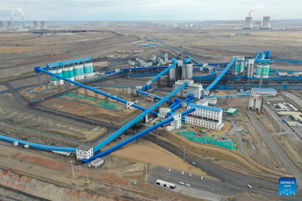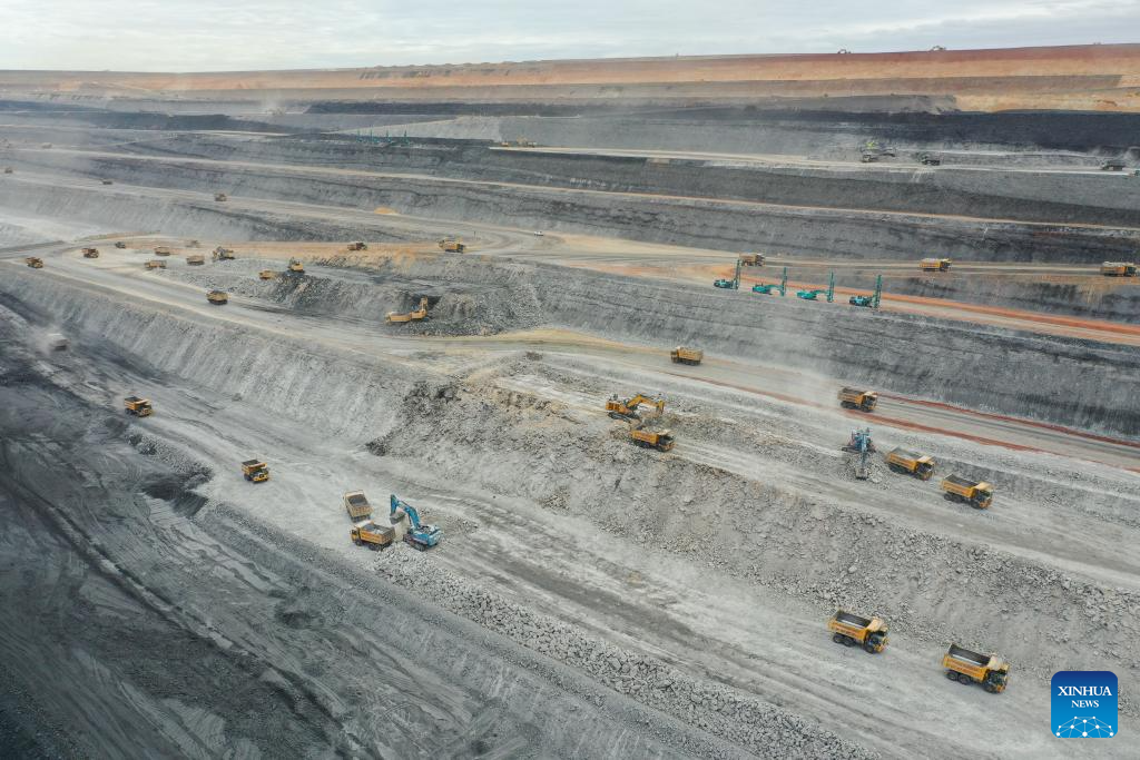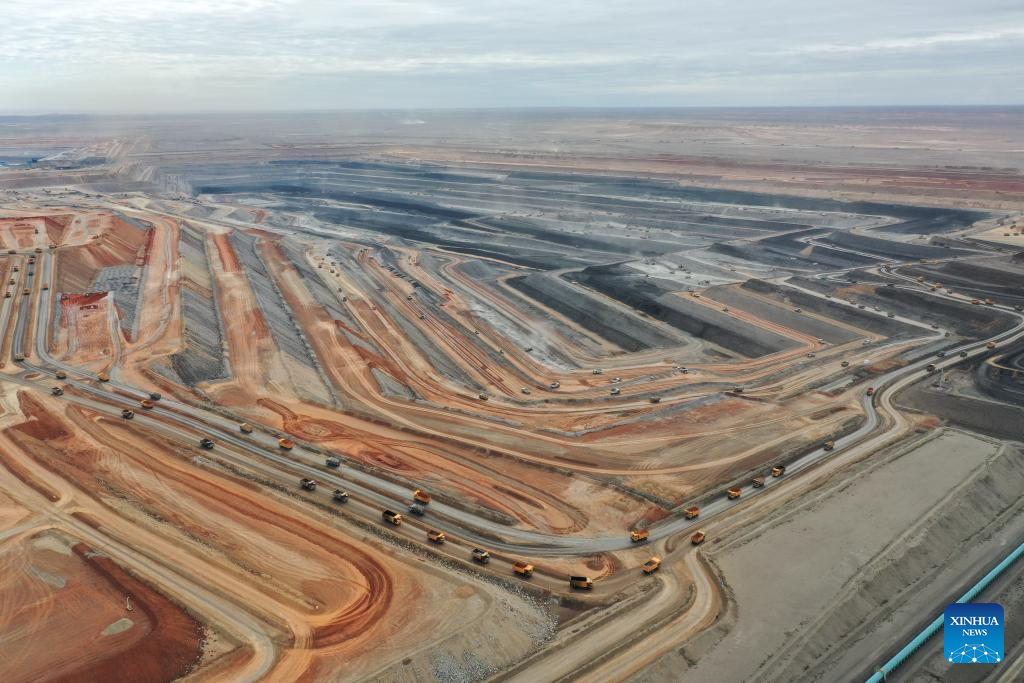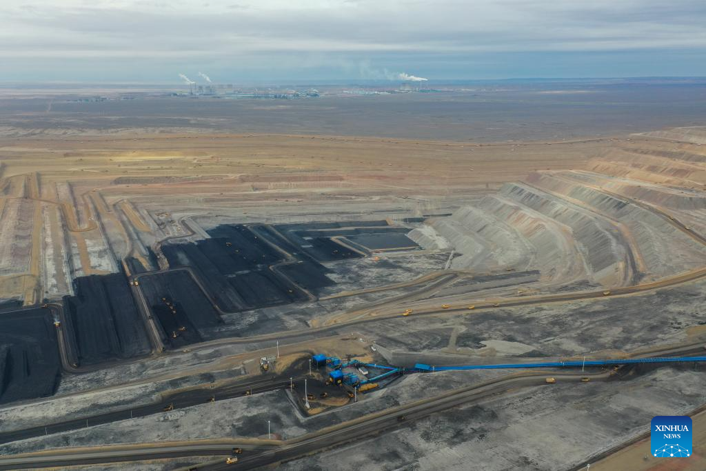 An aerial drone photo taken on Sept. 27, 2024 shows the operation site of the No.1 open-pit coal mine of Xinjiang Hongshaquan Energy Co., Ltd of China Energy Group in northwest China's Xinjiang Uygur Autonomous Region. (Xinhua/Ding Lei)