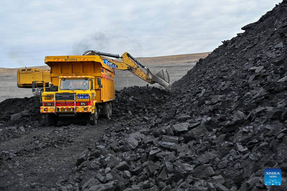 A staff member works at the Zhundong open-pit coal mine of Xinjiang Zhundong Energy Co., Ltd of China Energy Group in northwest China's Xinjiang Uygur Autonomous Region, Sept. 27, 2024. (Xinhua/Ding Lei)