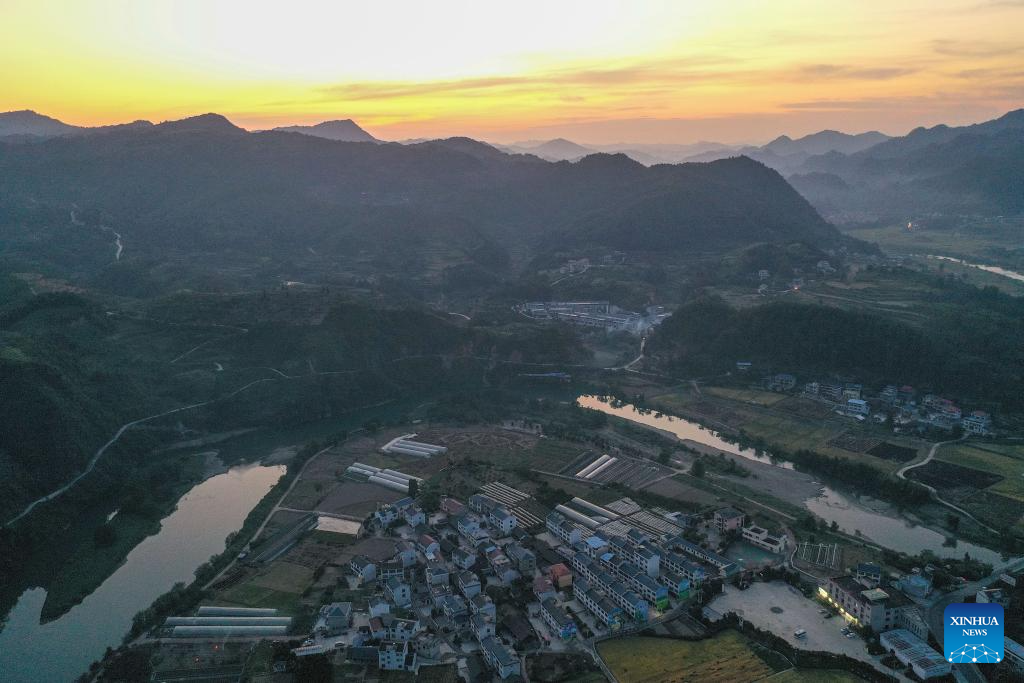 An aerial drone photo taken on Sept. 25, 2024 shows a view of Zhouping Village, Cengong County of Qiandongnan Miao and Dong Autonomous Prefecture, southwest China's Guizhou Province. (Xinhua/Yang Wenbin)