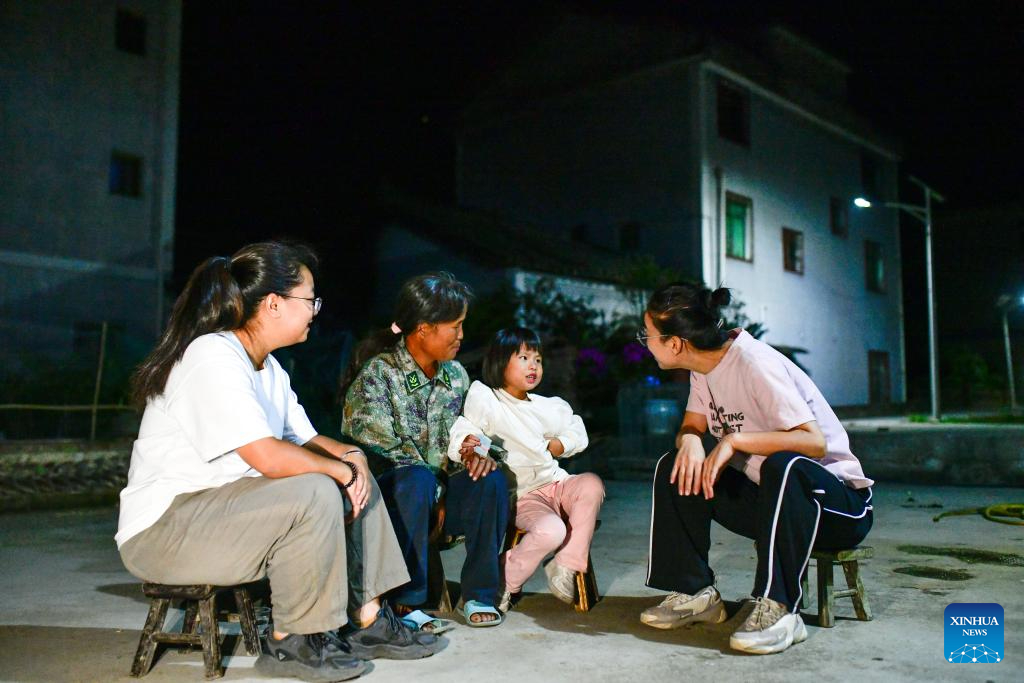 Hou Jiayuan (R) talks with a villager in Zhouping Village, Cengong County of Qiandongnan Miao and Dong Autonomous Prefecture, southwest China's Guizhou Province, Sept. 25, 2024. (Xinhua/Yang Wenbin)