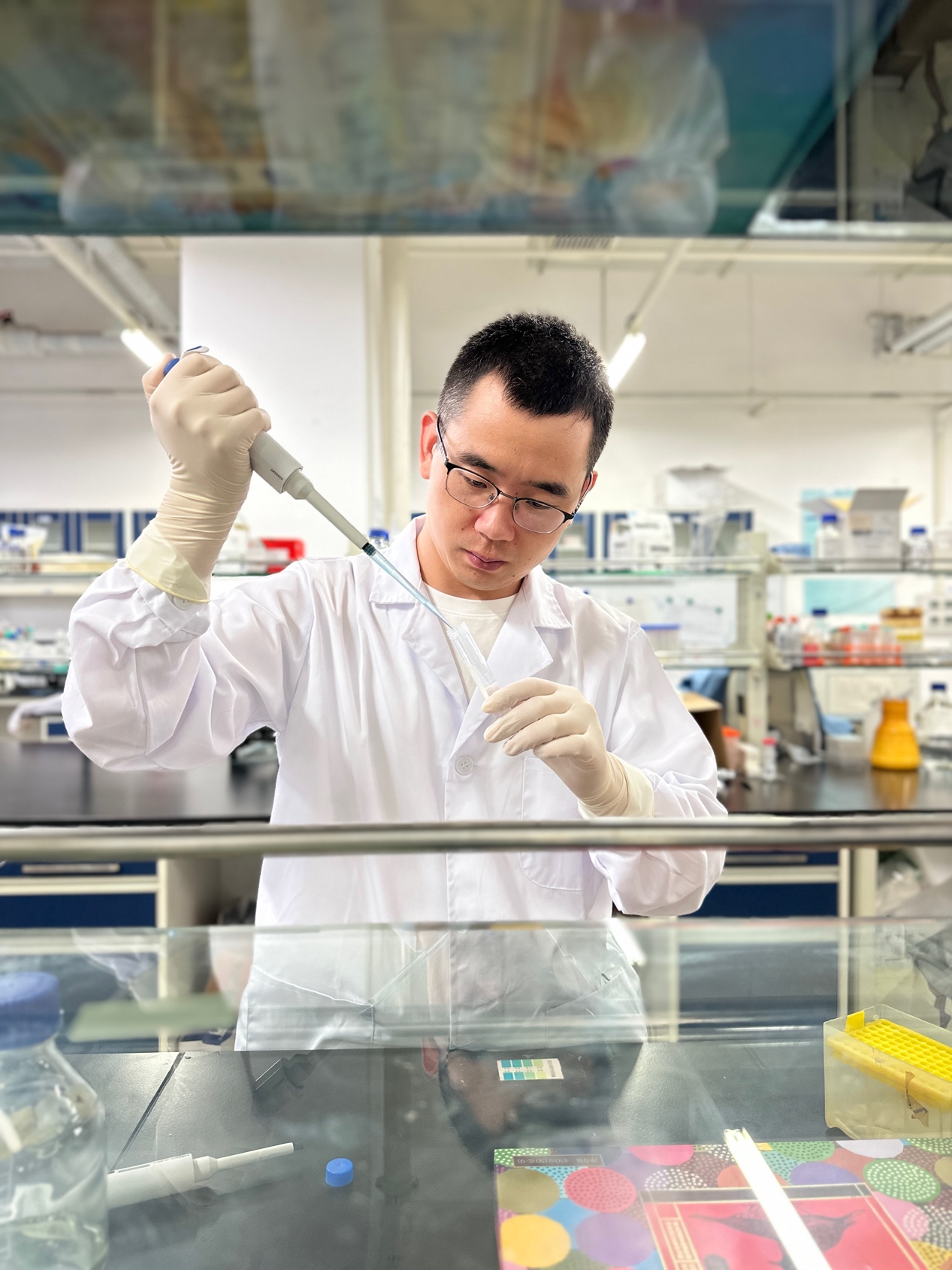 Nankai University students do biological vascular graft-related research at the Laboratory of Tissue Engineering & Cardiovascular Biomaterials at Nankai University, north China's Tianjin, Sept. 20, 2024. (People's Daily Online/ Zhao Tong)