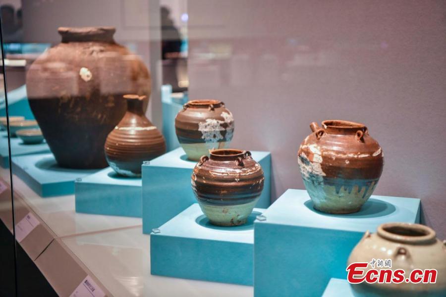 A relic retrieved from two ancient shipwrecks discovered in the South China Sea is on show at the China (Hainan) Museum of the South China Sea in Qionghai, south China's Hainan Province, Sept. 27, 2024. (Photo: China News Service/Luo Yunfei)