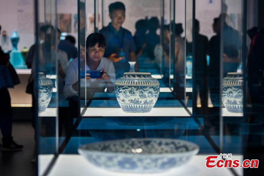 People visit an exhibition featuring relics retrieved from two ancient shipwrecks discovered in the South China Sea at the China (Hainan) Museum of the South China Sea in Qionghai, south China's Hainan Province, Sept. 27, 2024. (Photo: China News Service/Luo Yunfei)