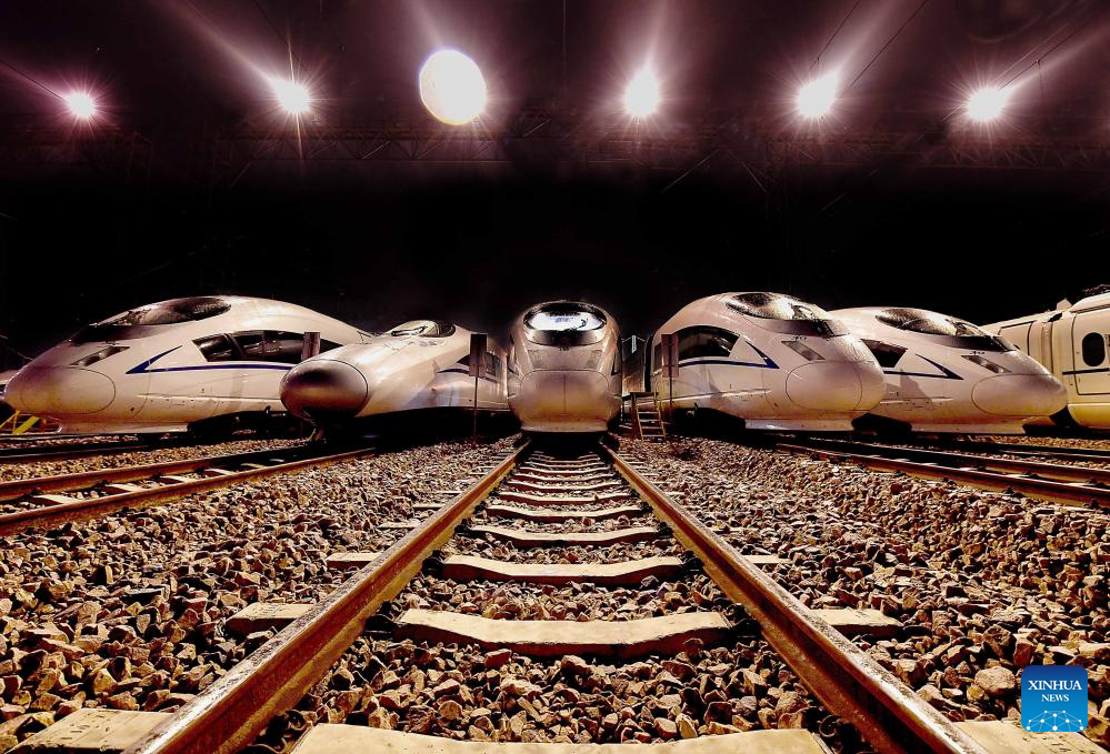This photo shows bullet trains parked at a train depot in Zhengzhou, central China's Henan Province, Sept. 6, 2016.?(Xinhua/Li An)