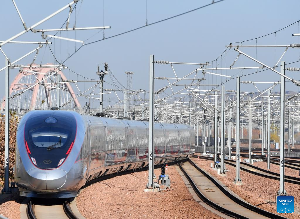 A bullet train departs from Zhengzhou East Railway Station in Zhengzhou, central China's Henan Province, Dec. 1, 2019.?(Xinhua/Li An)