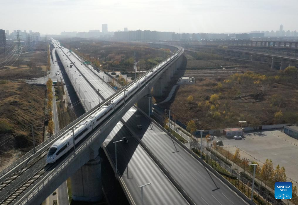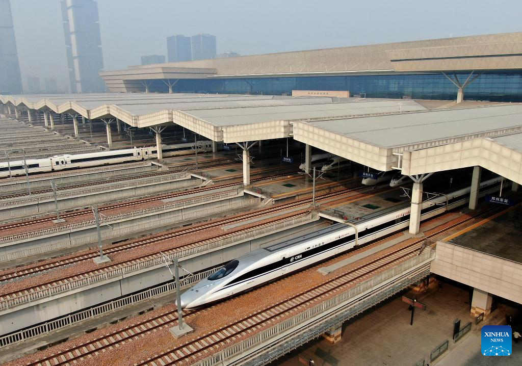 A bullet train departs from Zhengzhou East Railway Station in Zhengzhou, central China's Henan Province, Dec. 8, 2023.?(Xinhua/Li Jianan)