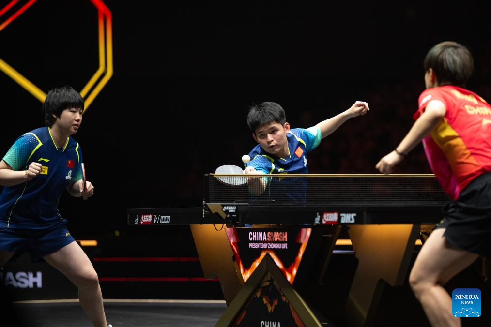 BEIJING, Oct. 4 (Xinhua) -- Second-seeded pair Lin Shidong and Kuai Man clinched an 11-5, 3-11, 11-5, 11-5 victory over Lin Gaoyuan and Wang Yidi in an all-Chinese mixed doubles final at the World Table Tennis (WTT) China Smash on Friday.