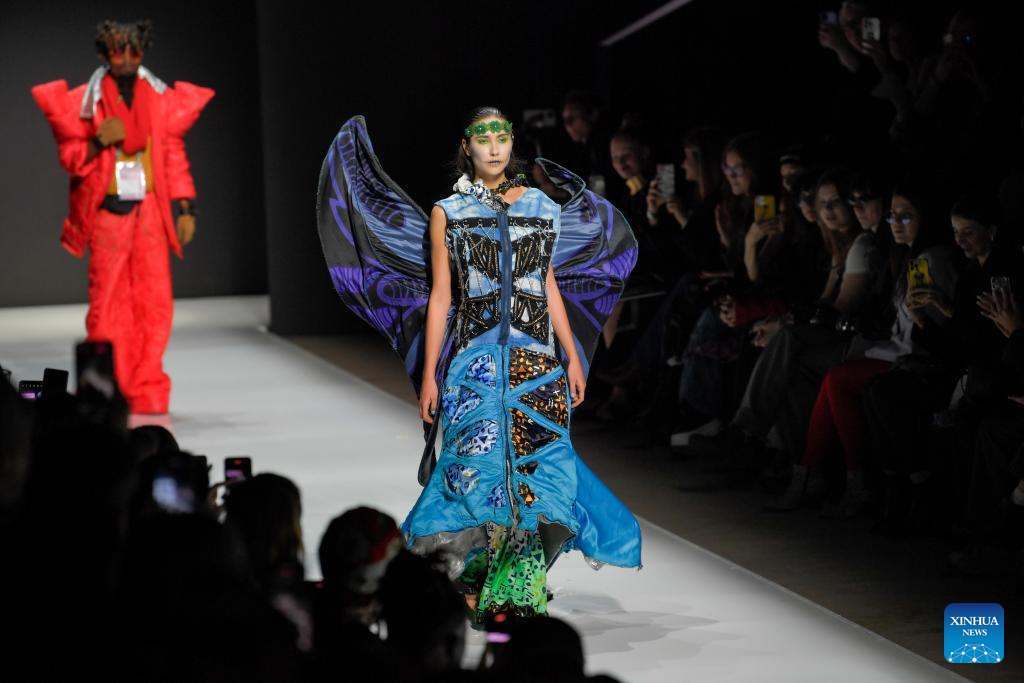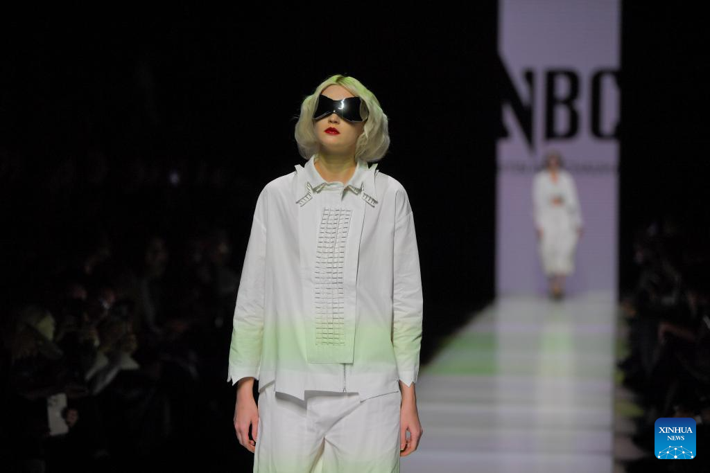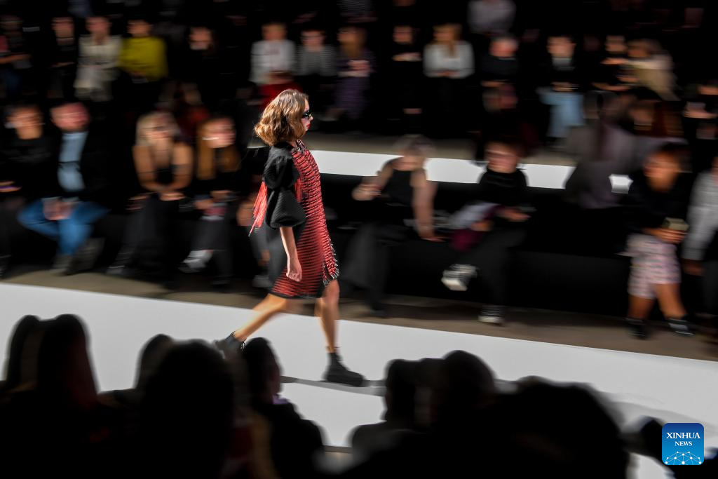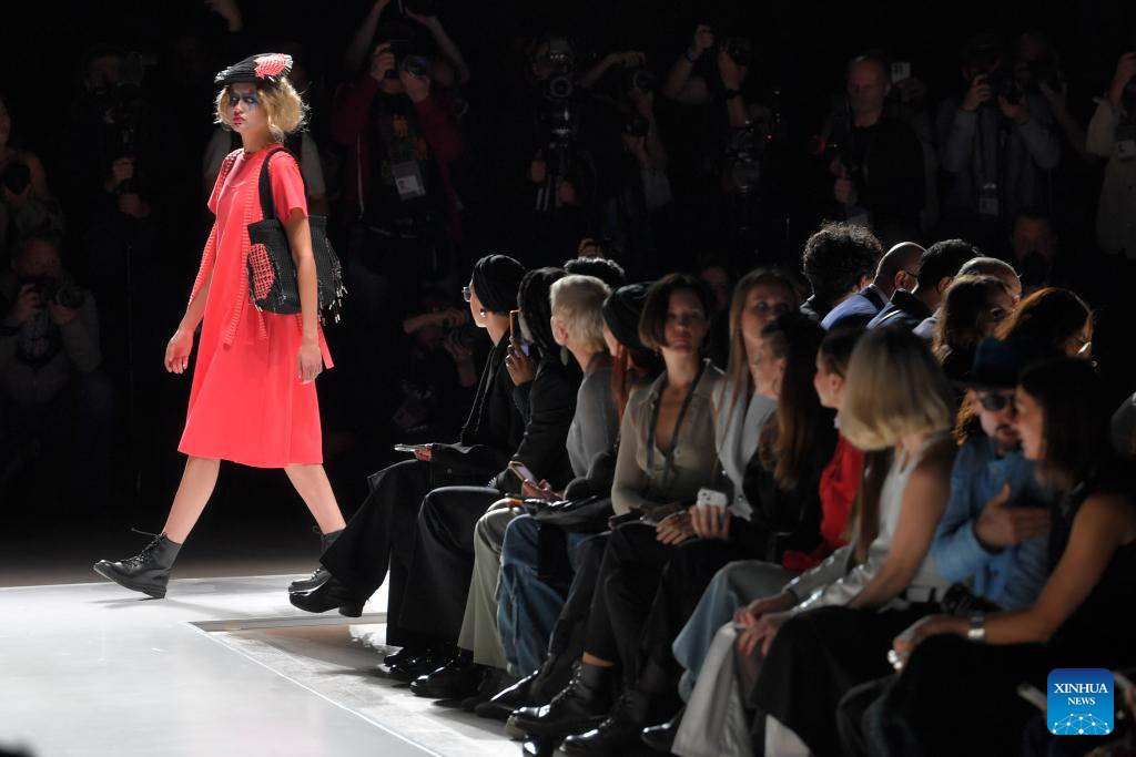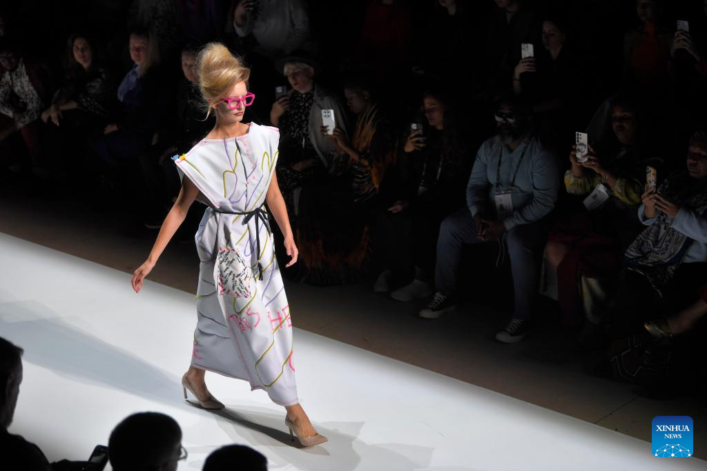 Models present creations during the Moscow Fashion Week in Moscow, Russia, on Oct. 4, 2024. The Moscow Fashion Week kicked off on Friday and will last until Oct. 9. (Photo by Alexander Zemlianichenko Jr/Xinhua)