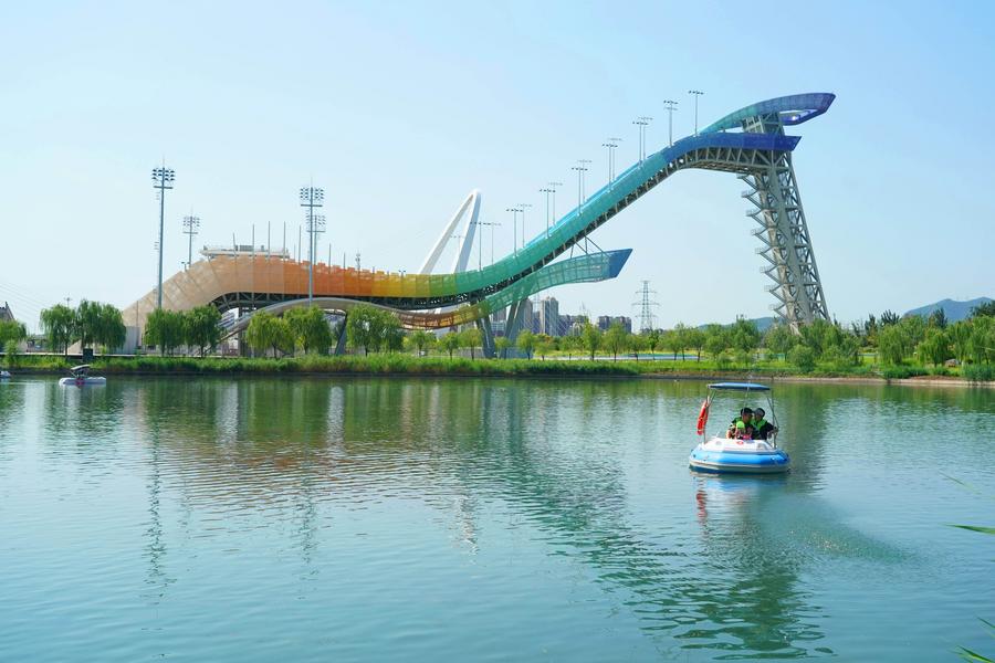This photo taken on Aug. 23, 2023 shows the Big Air Shougang in the Shougang Park in Shijingshan District of Beijing, capital of China. (Xinhua/Ren Chao)
