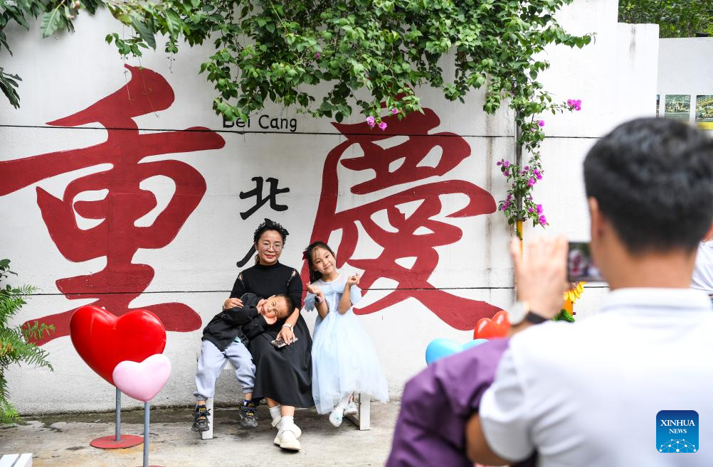 Visitors pose for a photo at the Beicang Cultural and Creative Block in Jiangbei District of southwest China's Chongqing Municipality, Oct. 4, 2024. During the week-long National Day holiday starting on Oct. 1, Chinese people take a break to travel and enjoy leisure activities. Travel and holiday consumption have continued to boom, mirroring the vitality of Chinese economy. (Xinhua/Wang Quanchao)
