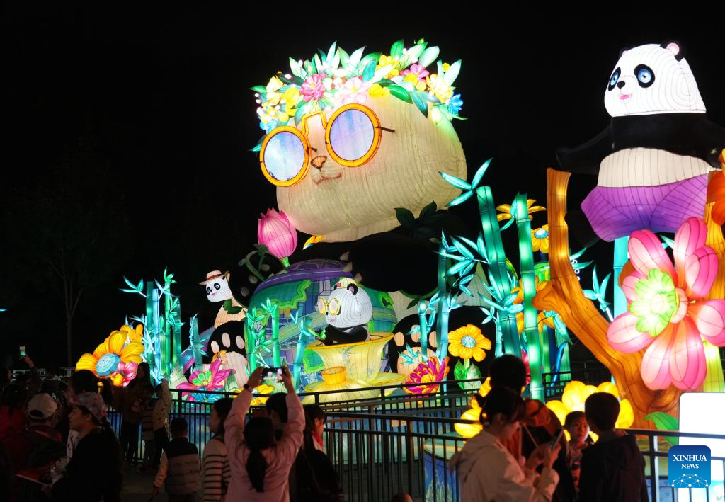 People enjoy a light show at the Beijing Garden Expo Park in Beijing, capital of China, Oct. 4, 2024. During the week-long National Day holiday starting on Oct. 1, Chinese people take a break to travel and enjoy leisure activities. Travel and holiday consumption have continued to boom, mirroring the vitality of Chinese economy. (Xinhua/Zhang Chenlin)