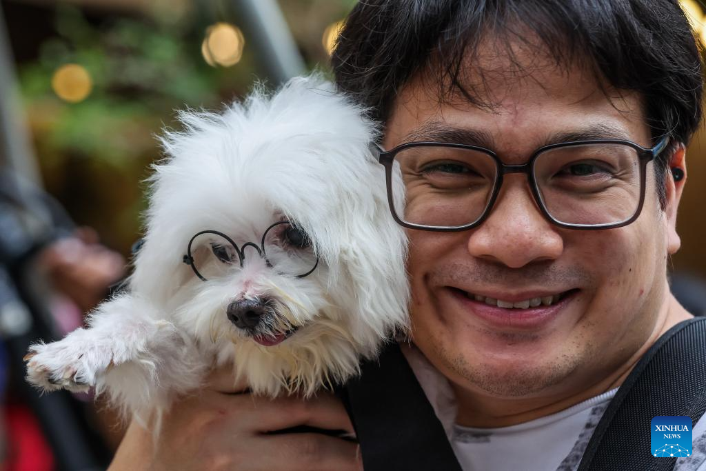 A man and his costumed pet dog is seen as they participate in a pet parade in Quezon City, the Philippines on Oct. 6, 2024. The pet parade was organized in celebration of the World Animal Day which is observed on Oct. 4 every year. (Xinhua/Rouelle Umali)