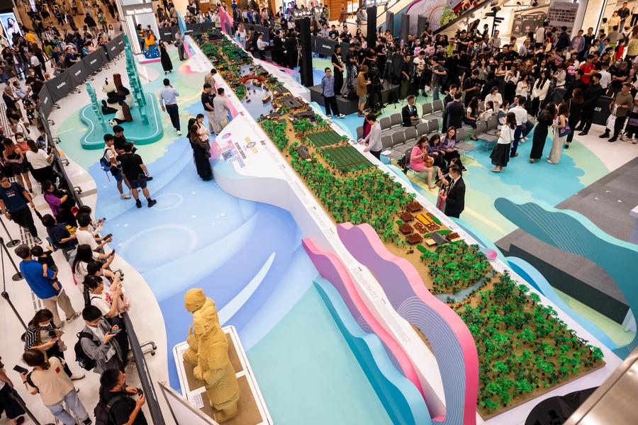 This photo taken on Sept. 23, 2024 shows the world's largest three-dimensional LEGO diorama of "Along the River During the Qingming Festival" in New Town Plaza in Sha Tin, Hong Kong, south China. (Xinhua/Zhu Wei)