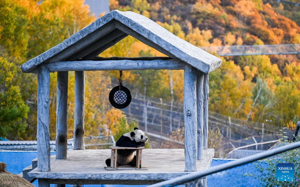 A giant panda is pictured at a zoo in Zhuozi County of Ulanqab, north China's Inner Mongolia Autonomous Region, Oct. 6, 2024. (Xinhua/Lian Zhen)
