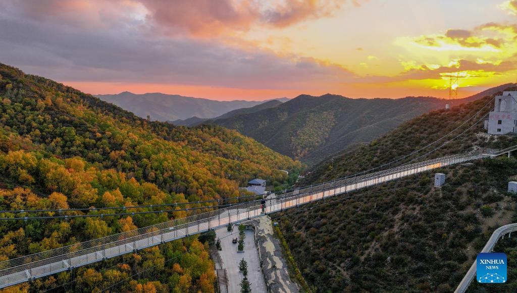 Tourists walk on a glass bridge at a scenic spot in Zhuozi County of Ulanqab, north China's Inner Mongolia Autonomous Region, Oct. 6, 2024. (Xinhua/Lian Zhen)