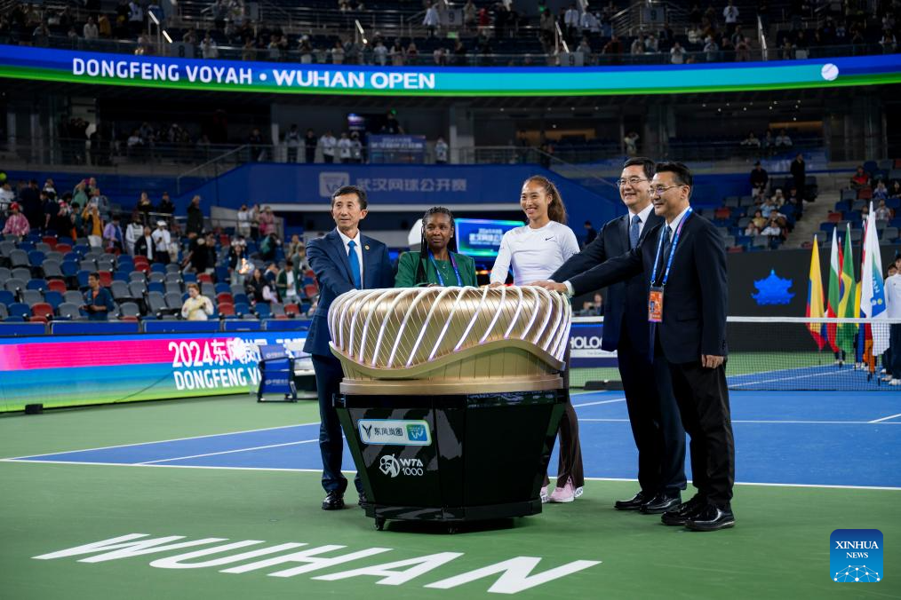 Chinese tennis player Zheng Qinwen (C) attends the opening ceremony of the 2024 Wuhan Open tennis tournament in Wuhan, capital of central China's Hubei Province, Oct. 7, 2024. (Xinhua/Wu Zhizun)