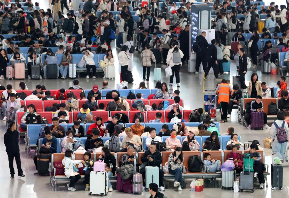 Passengers wait for trains at Taiyuan South Railway Station in Taiyuan, Shanxi province on Oct 7, 2024. (Photo by Zhu Xingxin/chinadaily.com.cn)