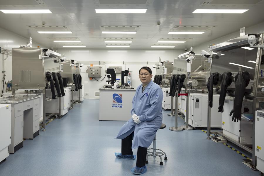 Li Chunlai, a researcher with the National Astronomical Observatories of the Chinese Academy of Sciences (CAS) and deputy chief designer of the Chang'e-6 mission, poses for a photo at the lunar sample laboratory in Beijing, capital of China, Sept. 24, 2024. (Xinhua/Jin Liwang)
