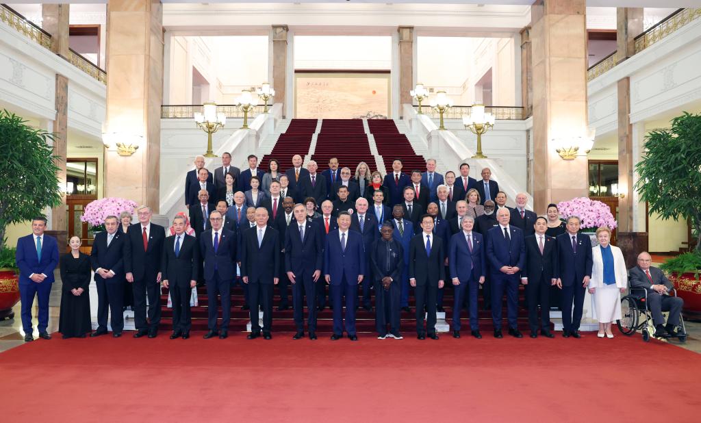Xi had a group photo taken with the foreign guests and spoke highly of the long-term dedication of international friends to cementing friendship with China.