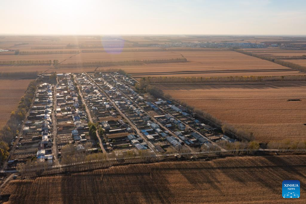 An aerial drone photo taken on Oct. 11, 2024 shows fields and villages in Dongsheng Village, Zhaodong City of northeast China's Heilongjiang Province. (Xinhua/Xie Jianfei)