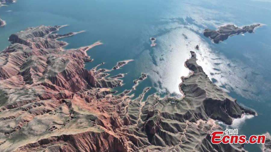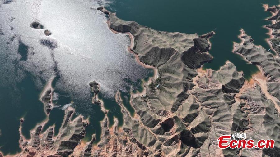 The landscape of the Yellow River with mountains showcases a blend of water and peaks along the riverside in Hualong County, Haidong City, northwest China's Qinghai Province. (Photo: China News Service/Li Yufeng)