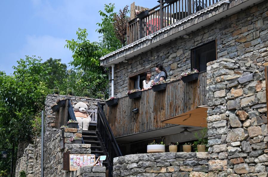 Tourists chat at a homestay in Xijingyu Village of Jizhou District, north China's Tianjin, July 6, 2024. (Xinhua/Zhao Zishuo)