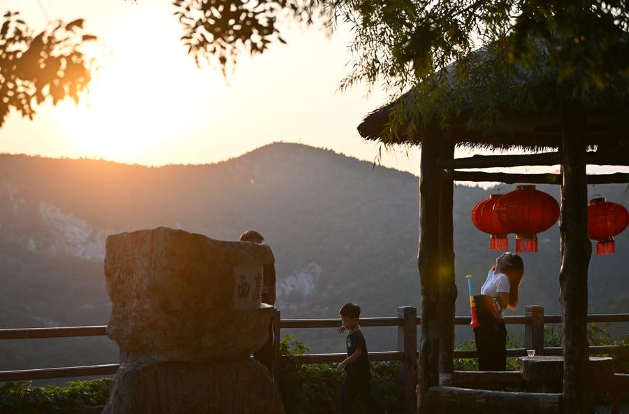 Tourists enjoy the sunset scenery in Xijingyu Village of Jizhou District, north China's Tianjin, Sept. 23, 2024. (Xinhua/Li Ran)