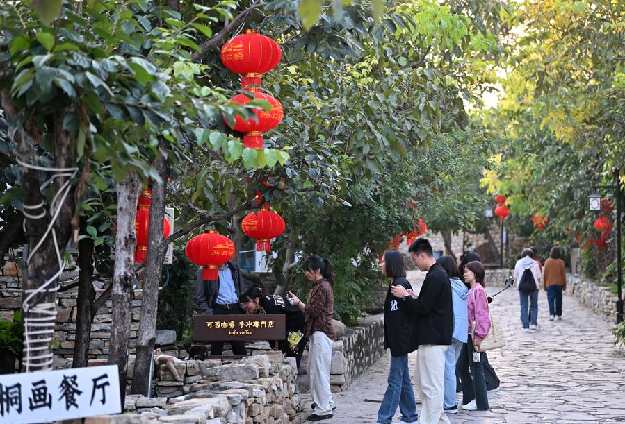 Tourists visit Xijingyu Village of Jizhou District, north China's Tianjin, Oct. 12, 2024. (Xinhua/Li Ran)