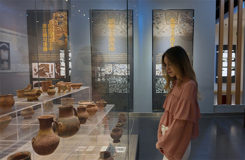 Vitalina Panovkina explores the Turpan Museum in Turpan, northwest China's Xinjiang Uygur Autonomous Region. (Photo/Liu Yanxi)