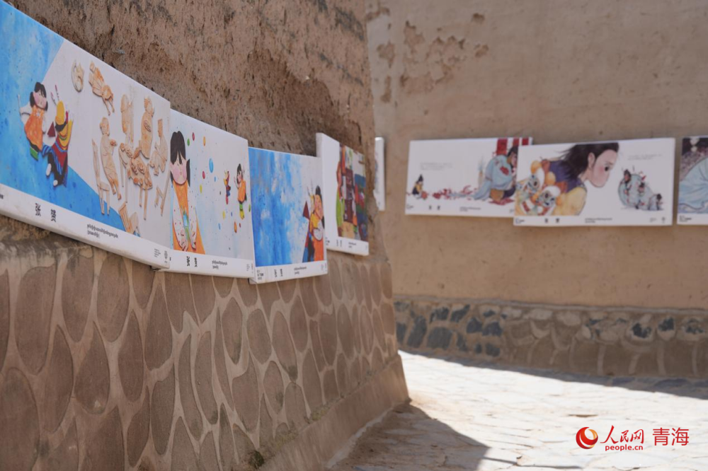 Photo shows paintings on display in Guomari ancient castle in Tongren city, Huangnan Tibetan Autonomous Prefecture, northwest China's Qinghai Province. (People's Daily Online/Chen Mingju)