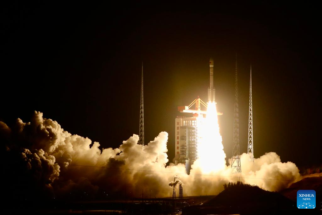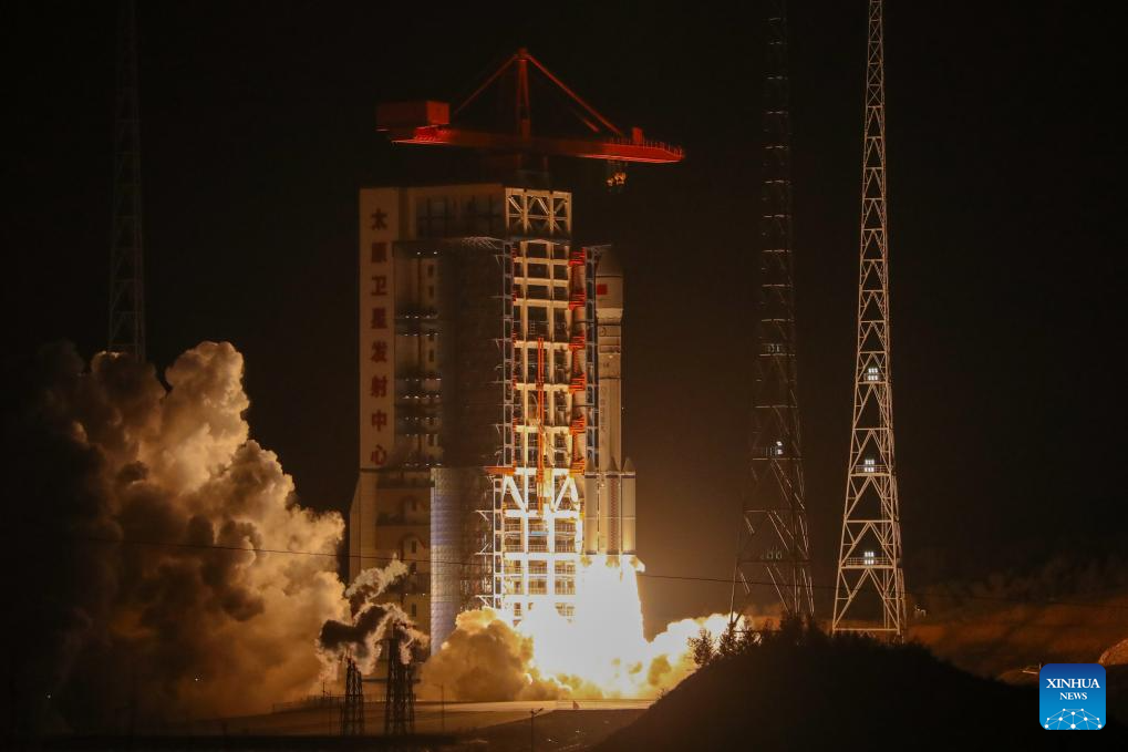 TAIYUAN, Oct. 15 (Xinhua) -- China sent a new satellite group into space on Tuesday from the Taiyuan Satellite Launch Center in north China's Shanxi Province.