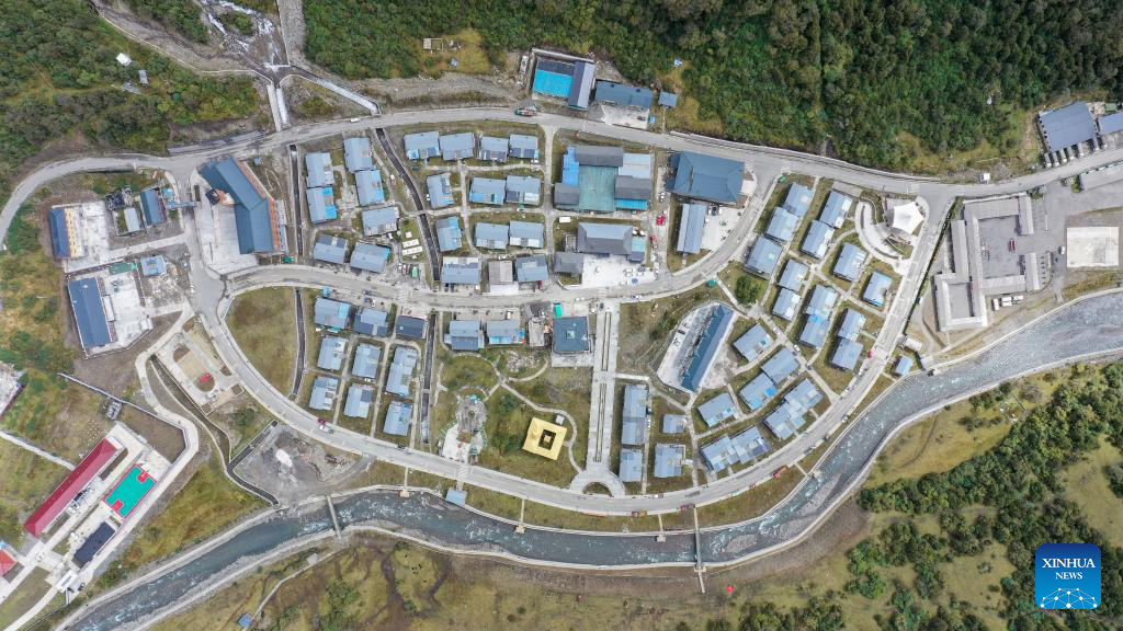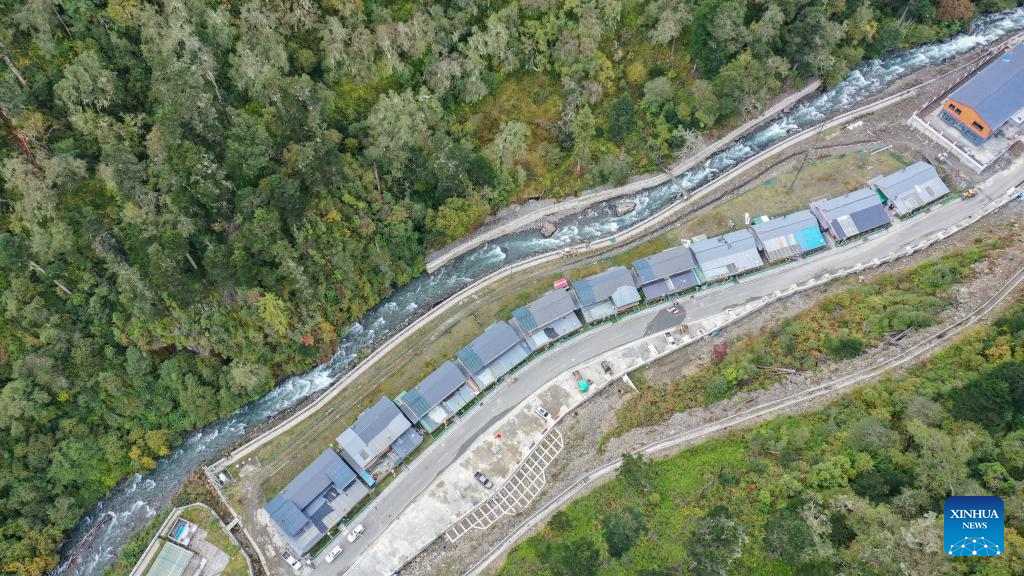 An aerial drone photo taken on Oct. 14, 2024 shows a view of Yumai Township in Shannan City, southwest China's Xizang Autonomous Region. (Xinhua/Ding Ting)